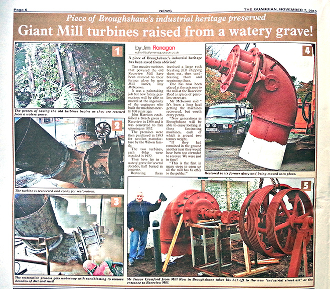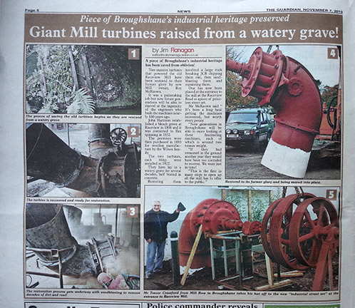 Restoring the Raceview Water Wheel – together with the existing displays of two water turbines, helping explain Raceview Mill’s historical dependence on Renewable Energy. the water wheel is the tallest in Ireland still capable of being run by water.